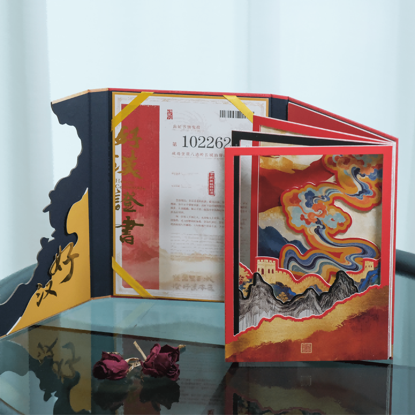 1.设计师将长城的磅礴气势浓缩于纸页之间:开合瞬间,山峦起伏的轮廓、矗立千年的烽火台、蜿蜒盘旋的城墙纹理一一浮现,宛如一座微型长城在掌心缓缓铺展。 蓝狮娱乐文创设计团队这波操作,给文化文创打了个样,文化遗产不需要“仰望”,需要的是“共情”当“登长城当好汉”从一句诗,变成好汉荣耀典藏册里的纸雕、勋章上的编号,长城文化就真正“活”在了当代人的生活里。