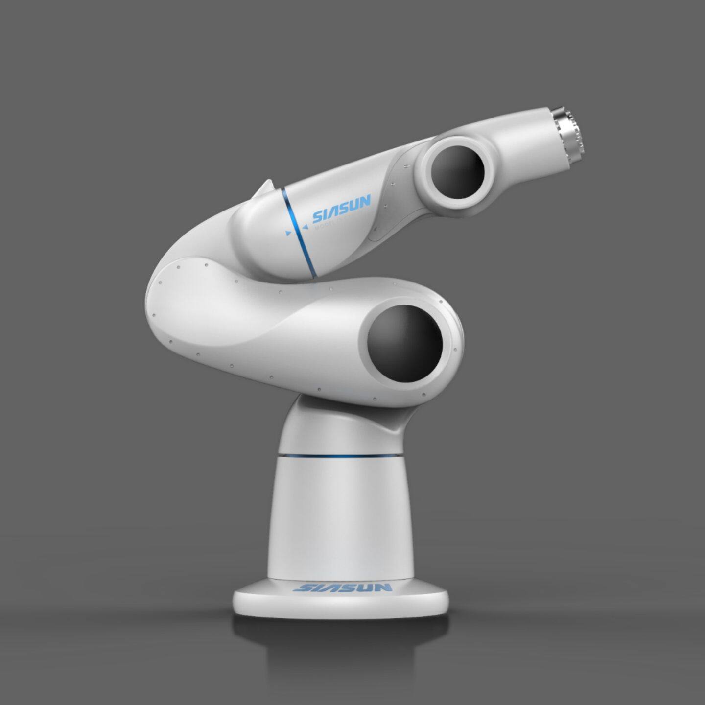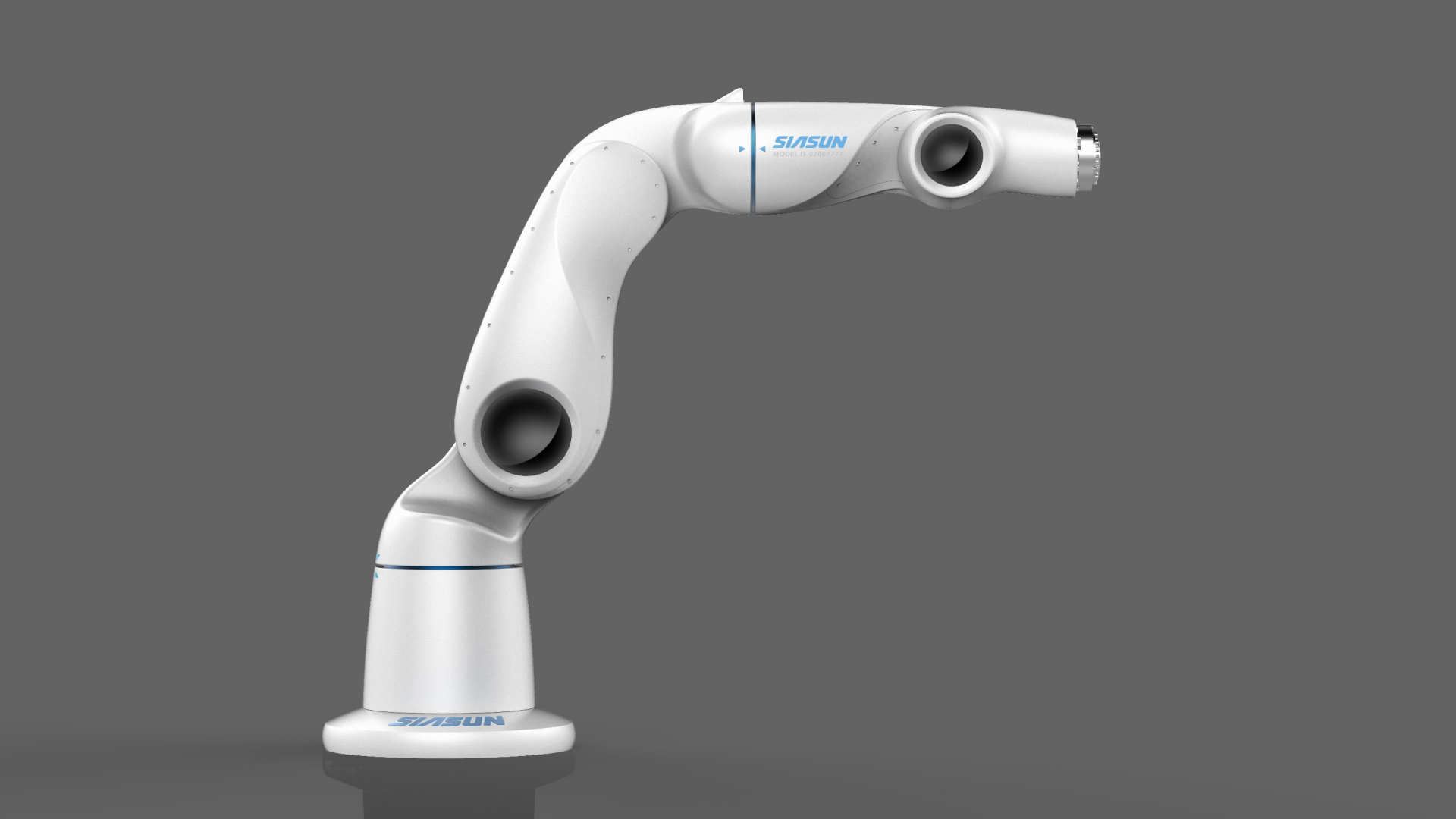 从外观风格入手,融合科技感与现代美学,采用流畅线条与简洁造型,搭配鲜明色彩点缀(如橙色、蓝色元素),打破传统机械臂的刻板印象,增强视觉吸引力。同时,强化品牌标识的融入,将 “SIASUN” 品牌元素巧妙置于机械臂关键部位,提升品牌辨识度。