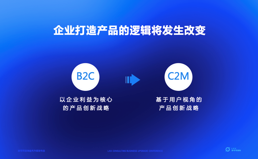 企业打造产品的逻辑已经发生改变。传统的工业时代,B2C模式占据主导,产品创新战略以企业利益为核心,企业往往站在经营视角俯视消费者,B在前C在后。互联网时代,物质极大丰富,C端选择权被充分释放,用户变得更聪明、更专业、更具个性主张、更懂自己的需求、更有自己的见解,于是C2M模式将成为主流。未来,基于用户视角的产品创新战略,比传统上以企业利益为核心的产品创新战略更有优势,能够全方位经营用户的整个生命周期。