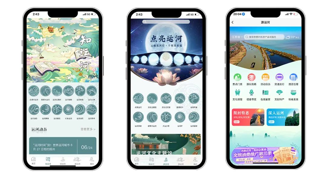 公众服务端分为“知运河”“探运河”“游运河”三大板块。“知运河”重点打造运河知识传播体系,设立非遗、红色、美食等10余个运河文化主题专栏,平台呈现文献、资讯4万多篇,媒介资源超3万个。“探运河”重点打造线上展陈空间,运用手绘长卷、互动游戏等方式,展开运河精神内涵的具象表达。“游运河”重点打造运河旅游服务总台,构建大运河文化公园会员服务体系。