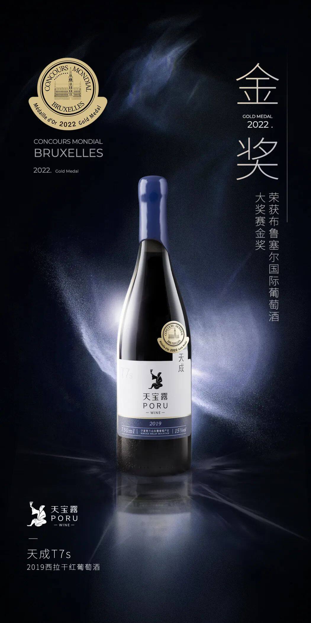 来自中国精品葡萄酒品牌PORU(天宝露)旗下的“天成橡木桶西拉干红2019”,一举摘得金奖。