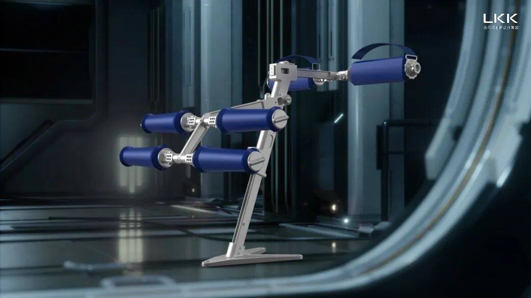 由于太空中失重现象为宇航员带来工作、身体上的极大困扰,如何在舱内工作时,舒适的固定身体防止漂浮是限位产品设计时着重的考量点。此产品在不需要坐垫的情况下可完成坐、站等不同姿势固定需求,绑带固定腿部后,可以快捷伸缩调整腿部角度,高度、宽度等,快速折叠收纳不占用空间。