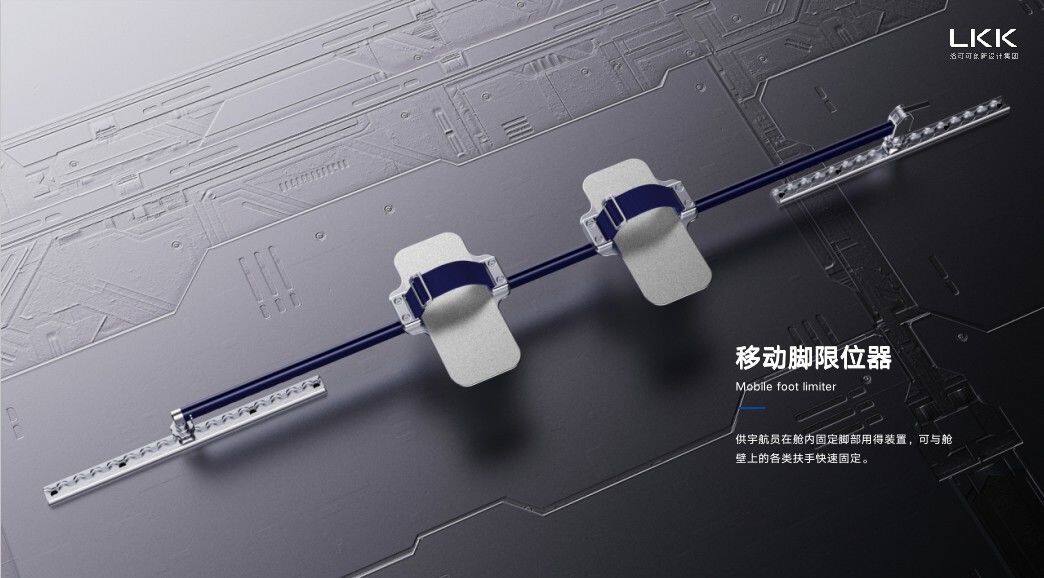 供宇航员在舱内固定脚部用的装置,立于舱内空间不同位置,方便宇航员定点站位,在不使用多余工具情况下,可与舱壁上的各类扶手、伸缩杆快速固定。