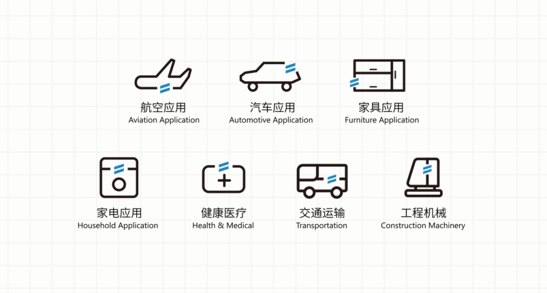设计团队将提取后的双斜线元素,植入品牌标识之中,同时经过规范化之后的标示性斜线标识植入苏世博多种业务版块、企业品牌传播场景进行延展,满足其航空行业、汽车行业、家居行业、健康医疗、交通运输等不同的使用场景,实现第一时间的视觉聚焦,进行品牌资产的无形积累。