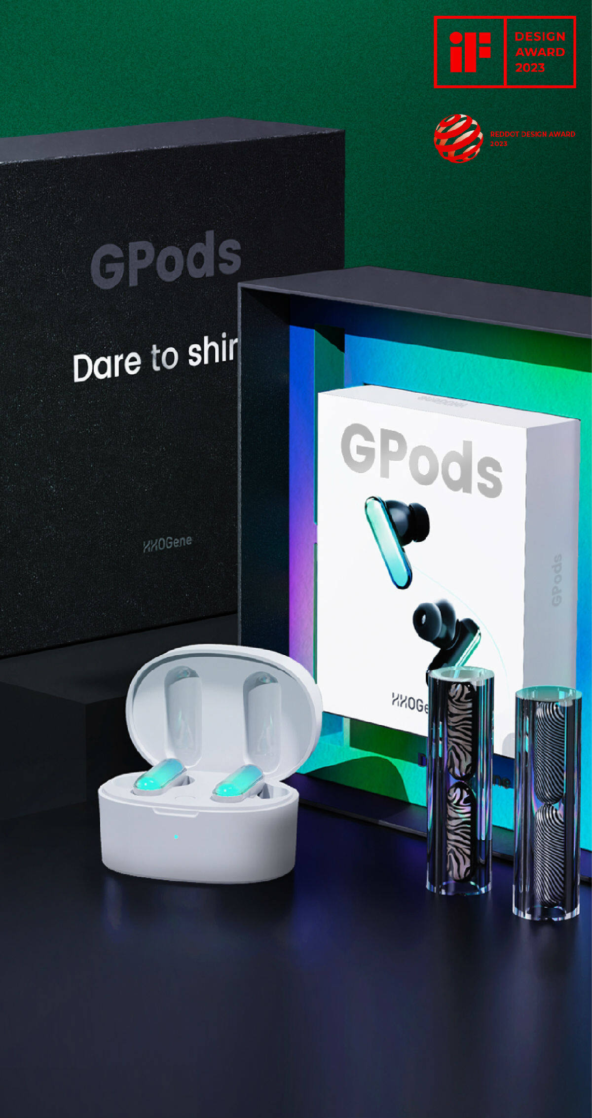 其中,参选作品慢阶音乐家套装和全球首款“数字光耳机”GPods,不仅在本次评比中一举获得大奖,在前不久揭晓的2023年红点奖评比中,也分别荣获红点至尊奖(reddot:best of the best获奖率小于1%)与红点奖(reddot)。