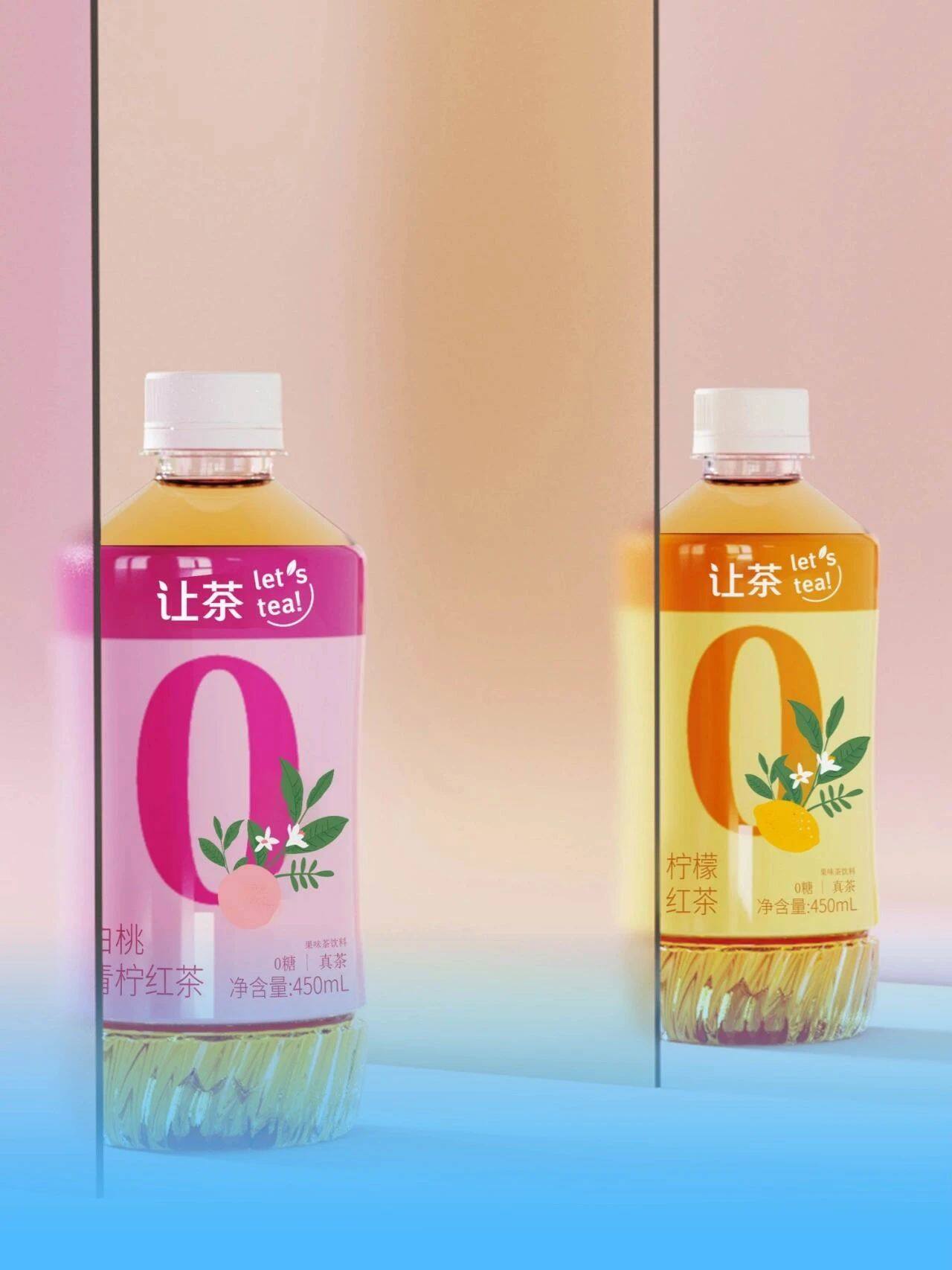 夏天人们倾向于选择健康无负担的饮品。让茶打造无糖果味茶系列,通过运用超级符号的设计手法让产品在竞品中脱颖而出,将0糖、真茶的卖点直接传达给目标用户。