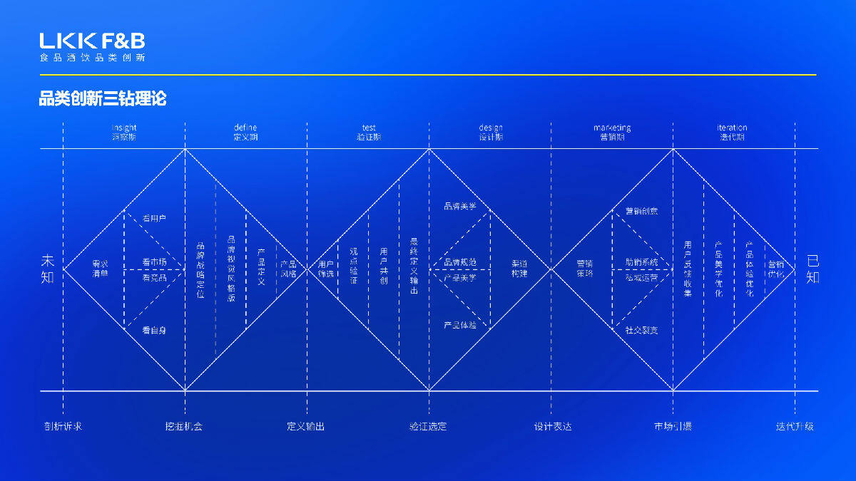 蓝狮娱乐食品酒饮团队通过“三钻理论”的品类创新模型,通过发现、定义、验证、设计、营销、迭代,产品全生命周期来帮助客户进行一站式的解决方案。通过咨询+设计的能力,帮助客户提供产品创新的价值,为客户带来更多的商业价值转化。