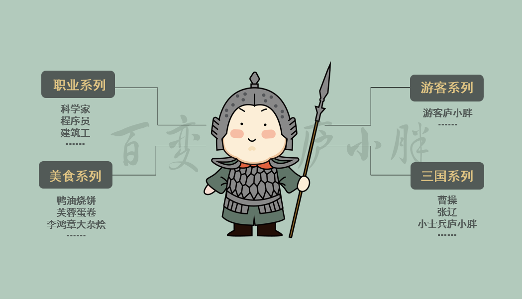 庐小胖系列IP系列--以三国时期魏吴兵士的形象为基础,承载老城历史文脉的同时,采用更加亲和的艺术表现手法进行多元多角度文化呈现。