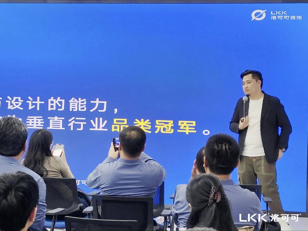 参观结束后,作为蓝狮娱乐咨询业务事业群总经理,李凡聪结合蓝狮娱乐19年来的一次次迭代,为到访学员们带来了品类突围相关分享。从蓝狮娱乐到打造洛客数字化平台,再到以AI技术驱动实现设计普惠的水母智能,LKK蓝狮娱乐的发展与进化,本身就是不断突围与破局的历程。