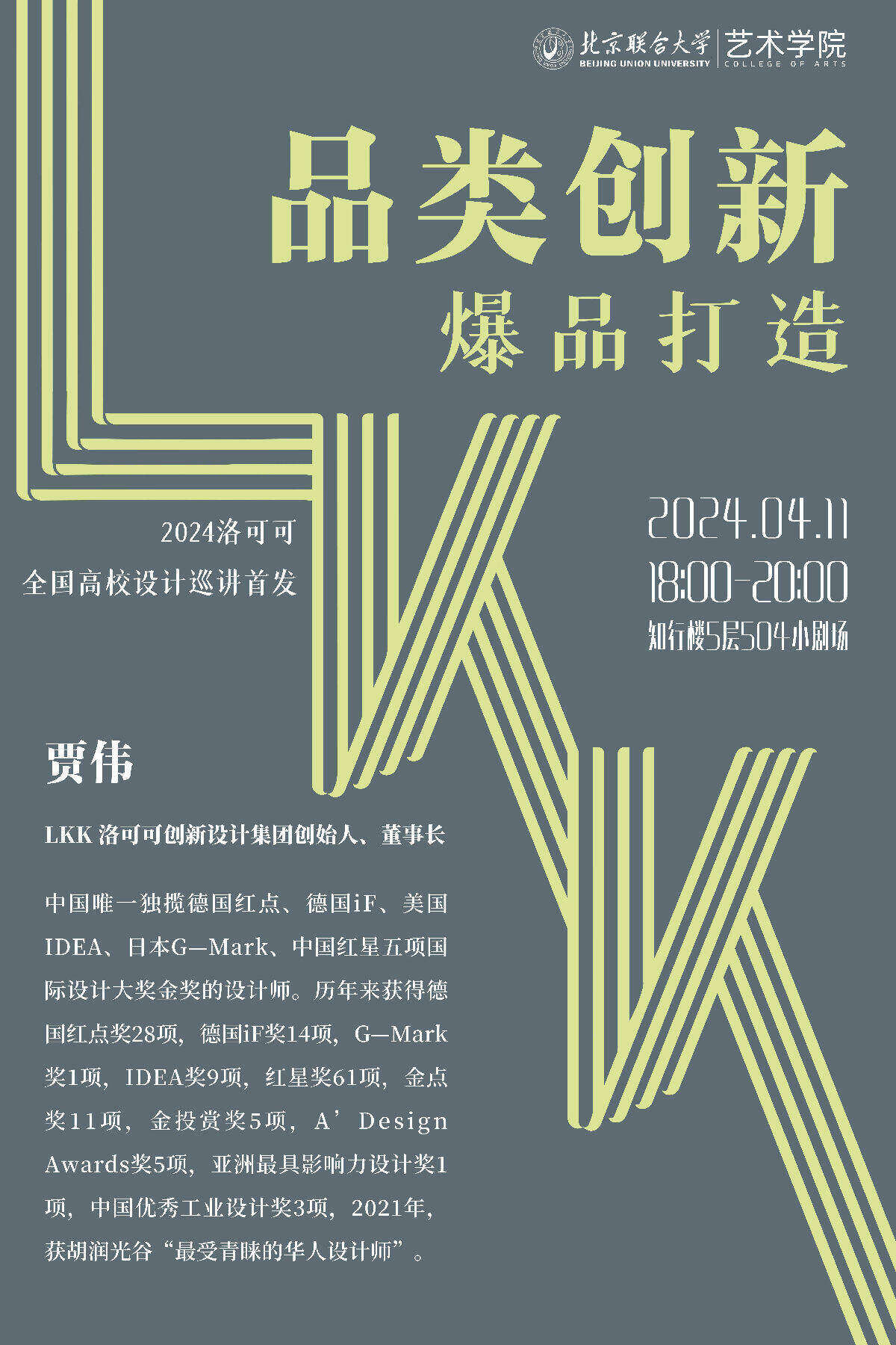 2024年,蓝狮娱乐整合创新集团重启全国高校公益巡讲。首场巡讲将于4月11日晚18:00在北京联合大学本部-知行楼5层504小剧场,由蓝狮娱乐创新设计集团创始人、董事长艺术家贾伟老师巡讲首发。分享主题《品类创新-爆品打造》。