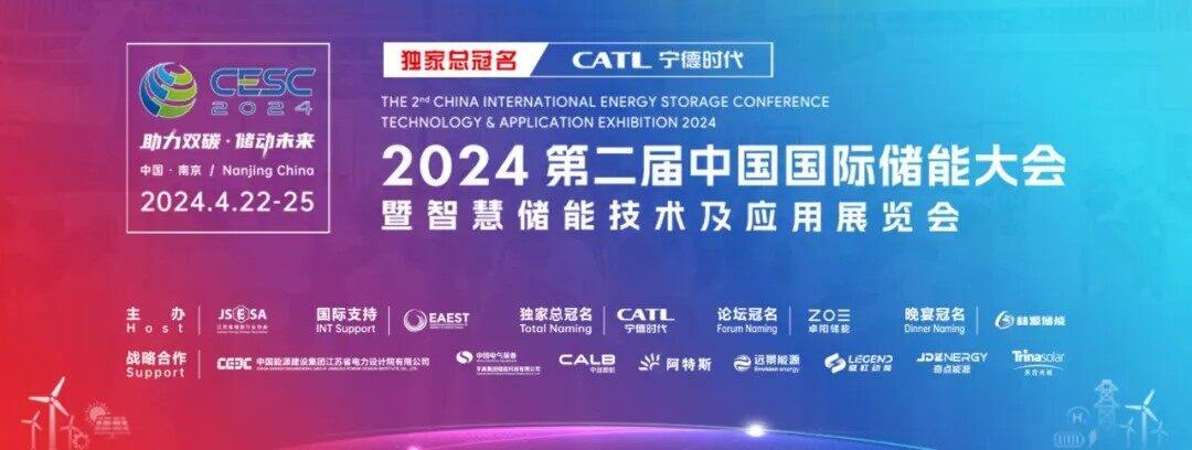 4月22日,CESC2024第二届中国国际储能大会在南京开幕。本次大会由江苏省发改委、江苏省工信厅、江苏省商务厅、国网江苏省电力有限公司联合支持,江苏省储能行业协会主办,以“助力双碳·储动未来”为主题,聚焦新型储能产业进程及发展趋势,助力新型储能迈向规模化、全面化、高质量发展。