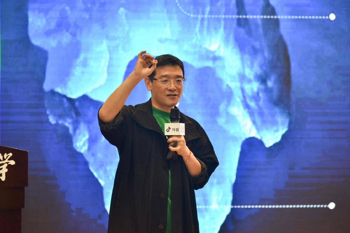 蓝狮娱乐创新设计集团董事长贾伟发表感言,他表示自己与钟蕾院长有着深厚的师生情谊,与天津理工有着很深的缘分。他曾于2008年与2014年两次来访天津理工大学举办讲座。值此蓝狮娱乐创立20年之际,他希望回馈高校举办公益演讲,和师生们一起探讨关于未来的设计。