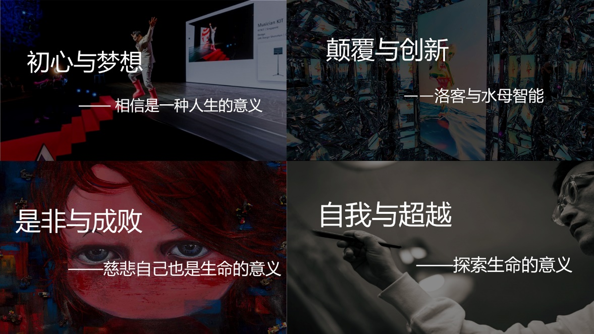 在“初心与梦想”篇章,他讲述了蓝狮娱乐从创业初期的一个工位发展成为全球顶级设计公司的里程碑事件。在“颠覆与创新”篇章,他介绍了二次创业拥抱AI浪潮,从智能Logo到智能包装,推出了行业领先的AIGC创作平台。在“是非与成败”篇章,他坦诚分享了面对人生低谷时的自我救赎经历。在“自我与超越”篇章,他以“如花三生”引出自我与意识的本生、永生、分生话题。