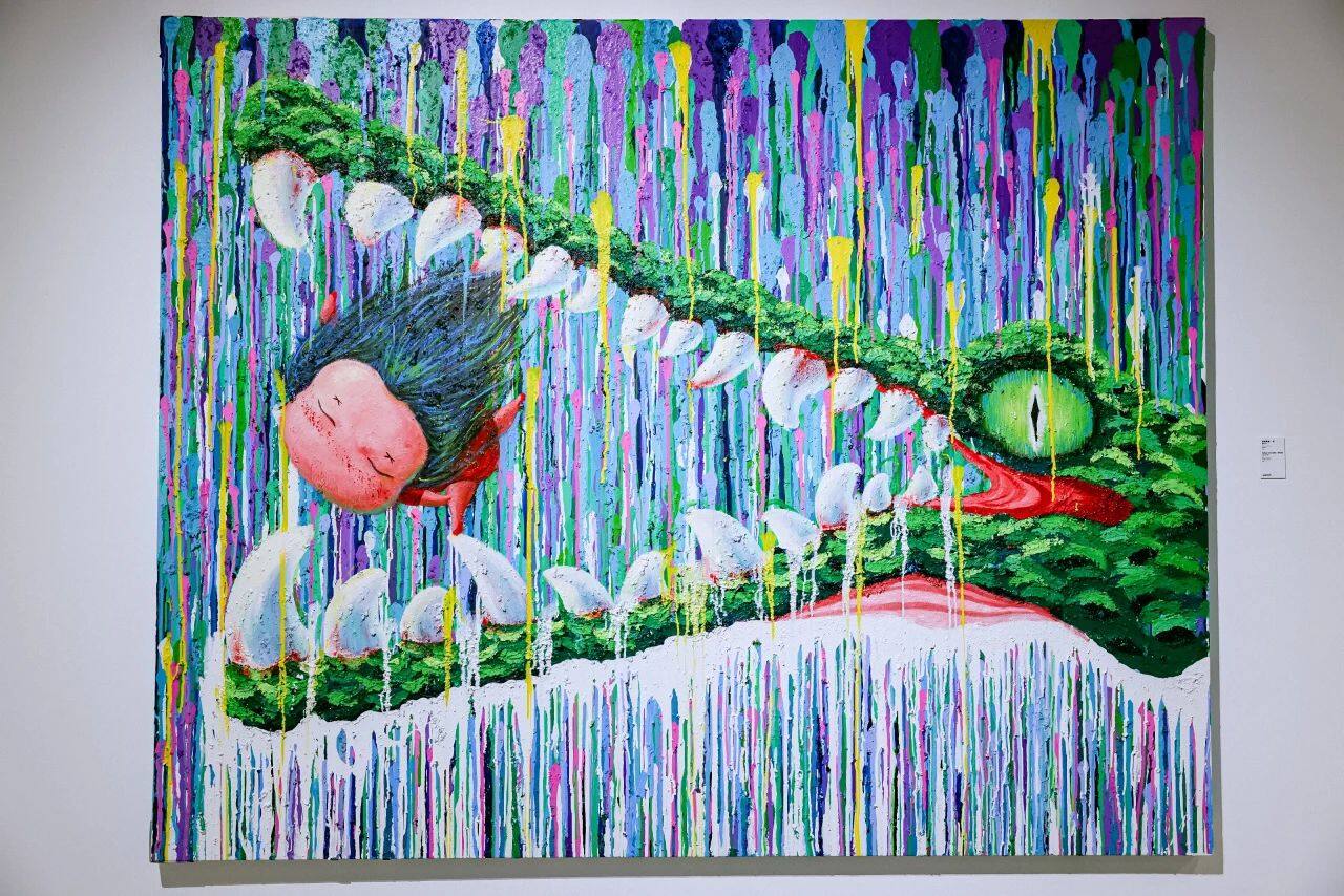 “本生”是艺术家结合自己的经历生发出来的部分,“如花”小女孩形象是艺术家内心的外化,通过“如花”或斜睨、或欢笑、或愤怒、或懵懂的不同形态来表达艺术家的个体意识,观者可以从其喜怒哀乐中找到共情,是观者以俯视的角度观看艺术家的精神世界;