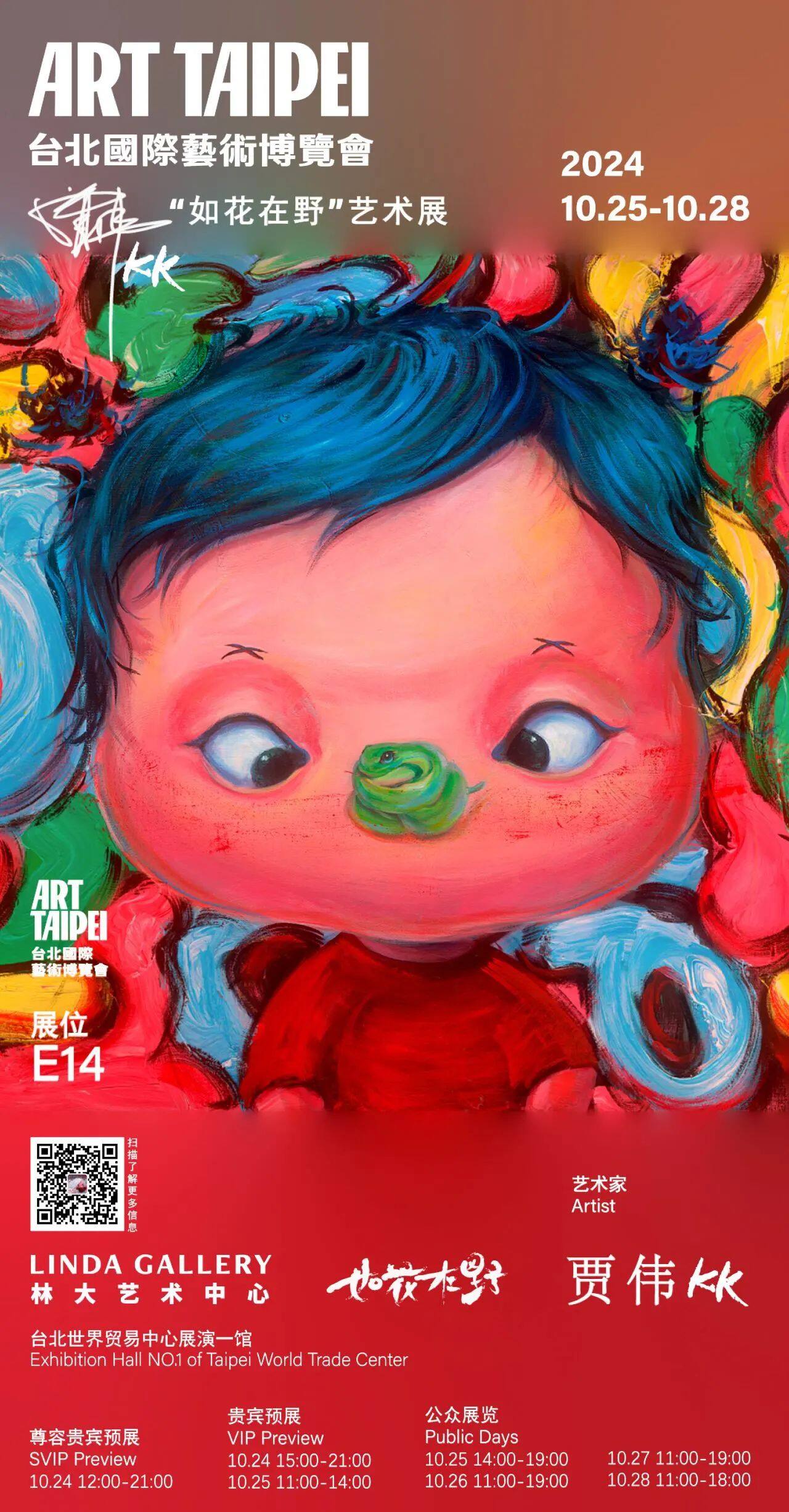 2024年10月25日至28日,第31届“ART TAIPEI 2024 台北国际艺术博览会”于台北世界贸易中心一馆盛大开展。“如花在野”贾伟KK艺术展亮相E14展位,由林大艺术中心合作呈现。