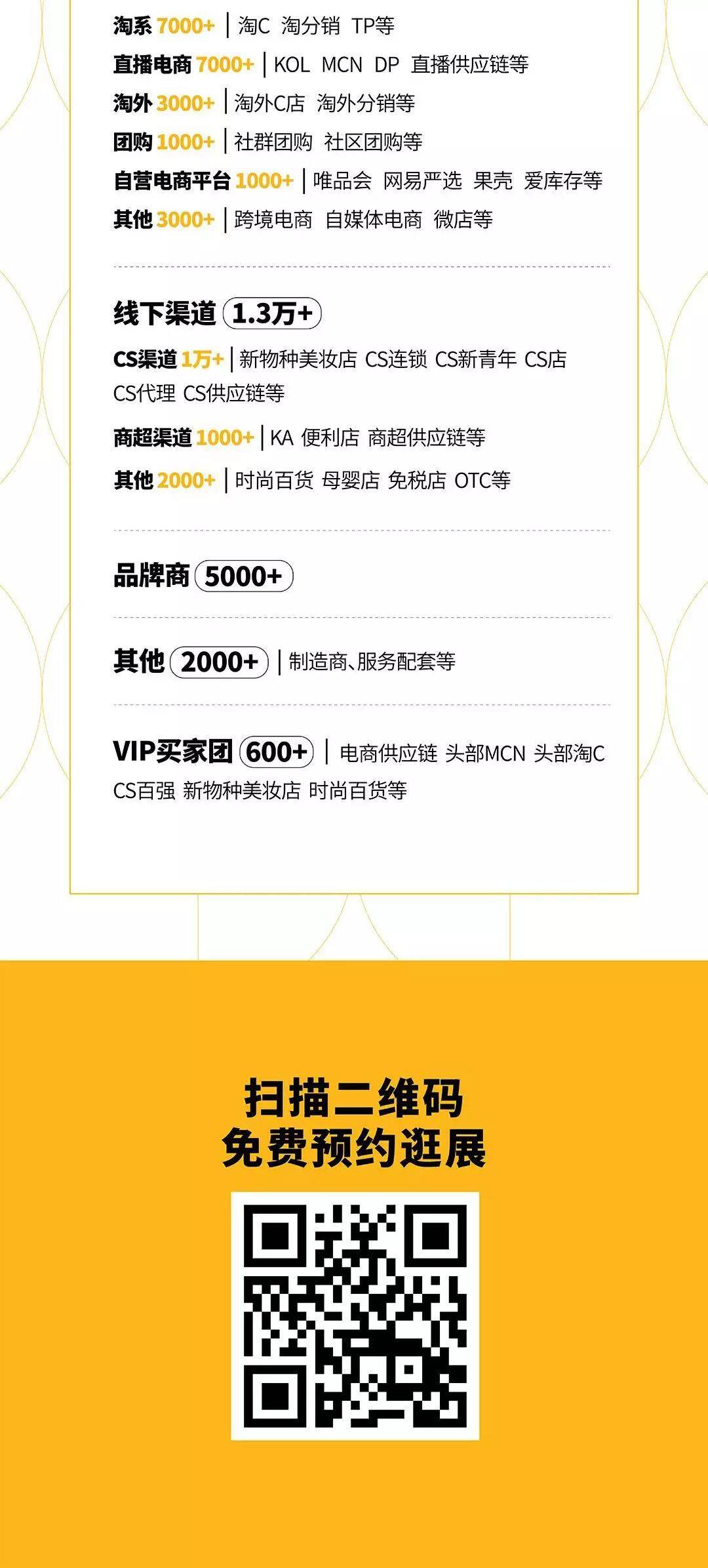 2022CiE美妆创新展,预计参展观众将超过4万人,其中,线上渠道约2.2万+,线下渠道约为1.2万+,还有5000+品牌商和2000+制造商、配套服务商等。现场还将有来自600+人数的VIP买家团,涵盖了电商供应链、头部MCN、头部淘C、CS百强、新物种美妆店以及时尚百货等超级大买家。