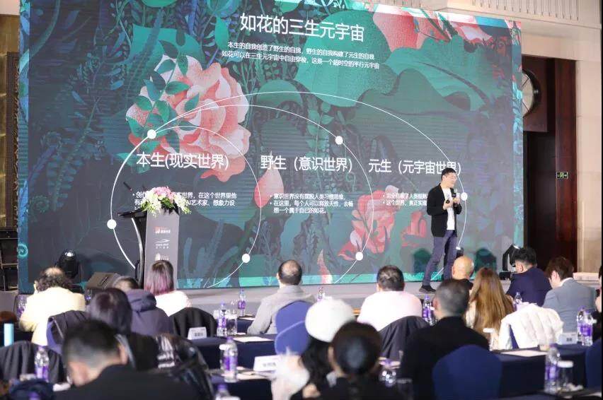 活动当天的主题论坛上,贾伟以题为《闯入元宇宙的美学次元》的主题演讲形式,向亚太顶尖设计师及各大艺术机构的相关嘉宾分享了他的最新元宇宙AI艺术力作——“如花在野”。